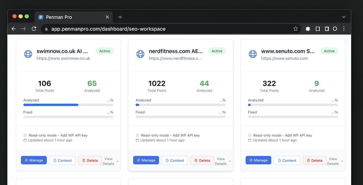 Penman Pro isn’t just another optimization tool — it’s your automated system for making every post clearer, stronger, and more visible in both search engines and AI chat responses. It analyzes, improves, and links your content so you don’t have to do the manual work.